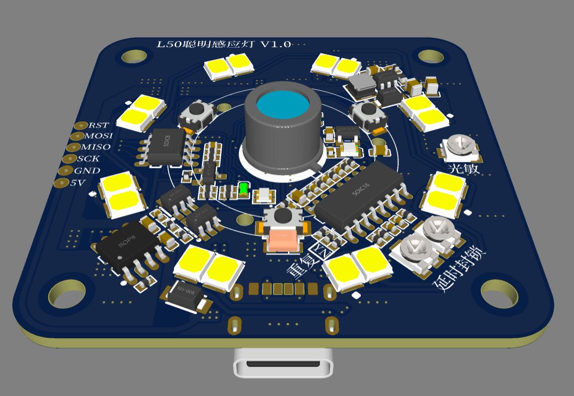 简介:一款红外热释感应灯,集成锂电充电、锂保、呼吸电量指示、升压恒流驱动、暖/白光可切换。开源协议