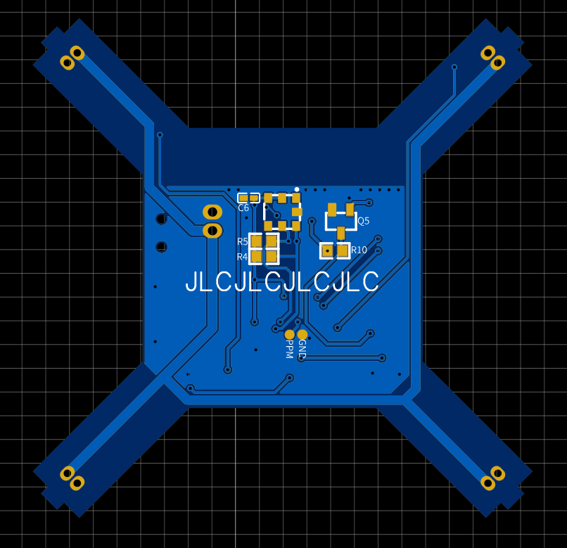 气压计型号BMP180,为了避免螺旋桨的气流对气压计造成影响,放在了板子的底面。底面还预留了PPM接收机接口,开源支持遥控器控制,不想玩小四轴的话,可以当做大四轴的飞控来用,不过要修改一下相关参数,重新编译下载飞控固件。