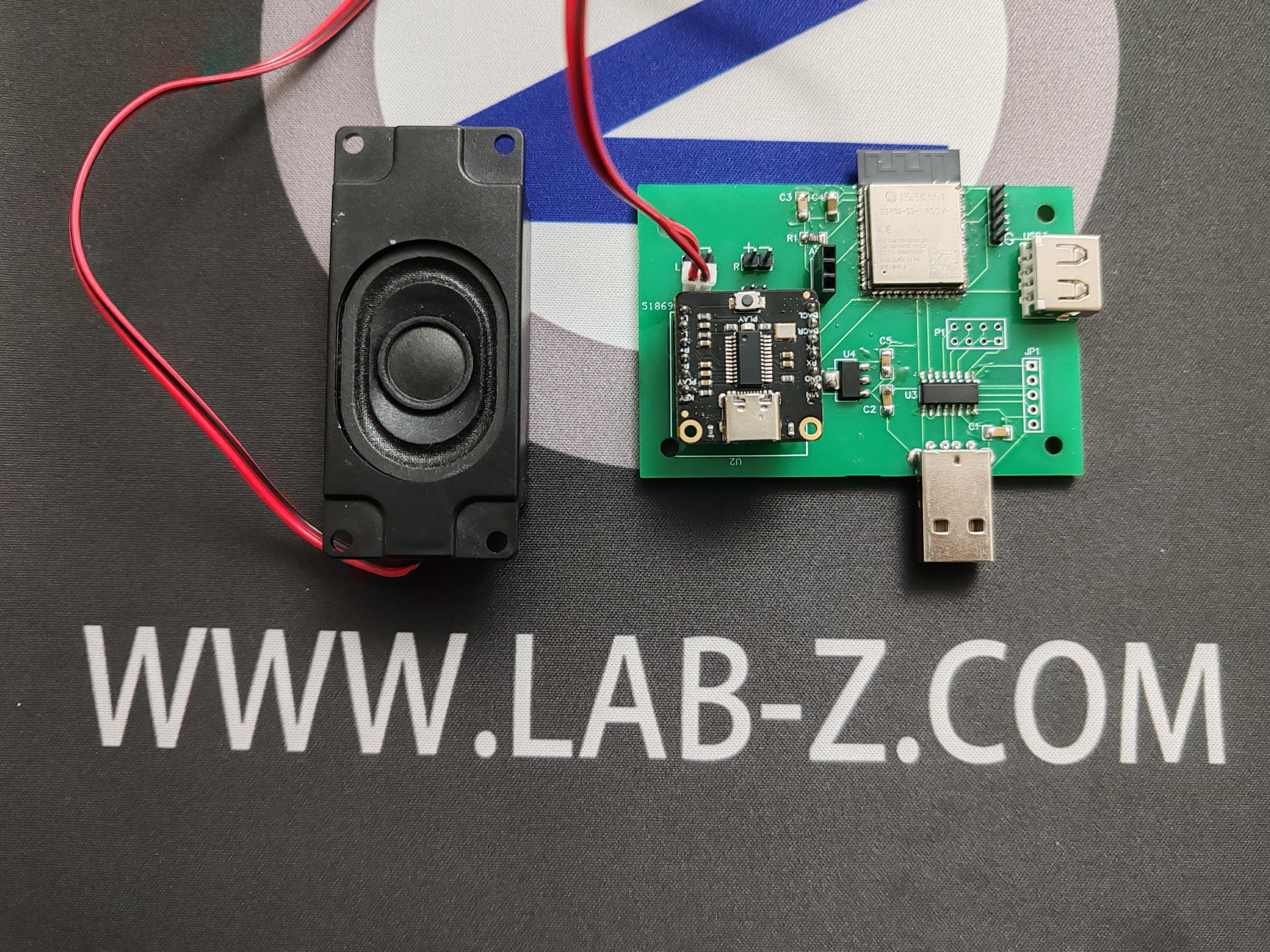 使用 ESP32-S3 作为 USB Host ,将解析后的数据通过串口发送给Ch9326,CH9326是一款HID转串口免驱芯片。它支持双向数据传输,用于接收串口数据,并按照HID类设备规范,将数据打包通过USB口上传给计算机,或者从计算机接收符合HID类设备的USB数据包,并从串口进行发送。通过提供的上位机软件,用户也可自行配置芯片的VID、PID,以及各种字符串描述符。芯片是 SOP16 封装,容易焊接;此外,解析后的数据还会发送给 DFRobot 的Fermion: DF1201S DFPlayer PRO MP3播放器模块【参考1】。这是一款MP3播放模块支持arduino、AT指令、板载按键和AD按键四种控制方式。通过板载按键即使在没有微控制器的情况下也能进行音乐播放和切换。模块搭载了128MB的存储空间,通过USB线即可很容易的将音乐拷贝到模块中。