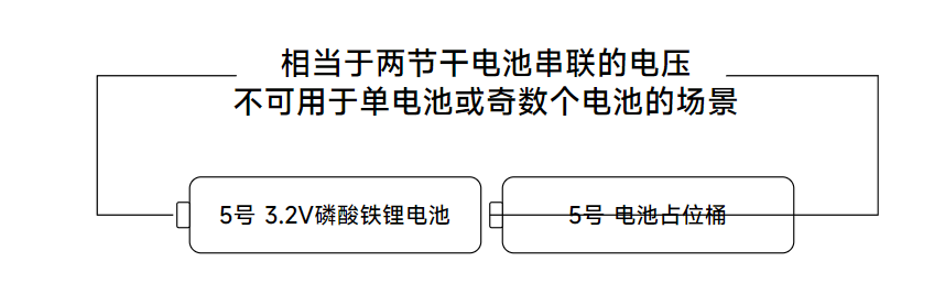 因为磷酸铁锂电池单节电池3.2V,使用在两节电池的场境下,必须配合一节假电池使用,如果使用两节磷酸铁锂电池,不保证会不会烧毁电器。
