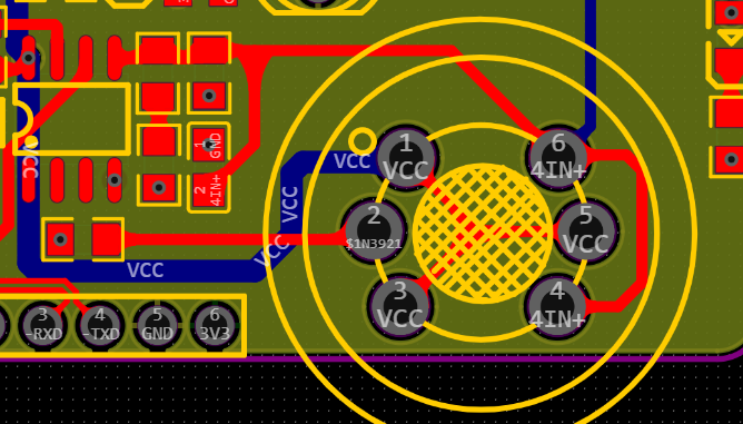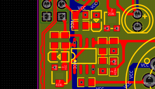 采用四层板结构,内1为GND,内二为vcc