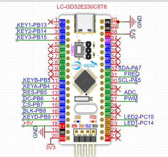 电路上为GD32最小系统板跟stm32兼容。