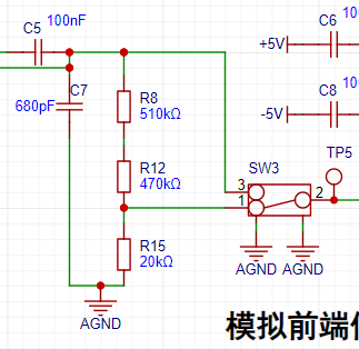 SW2开关连接2和1时为DC耦合电路