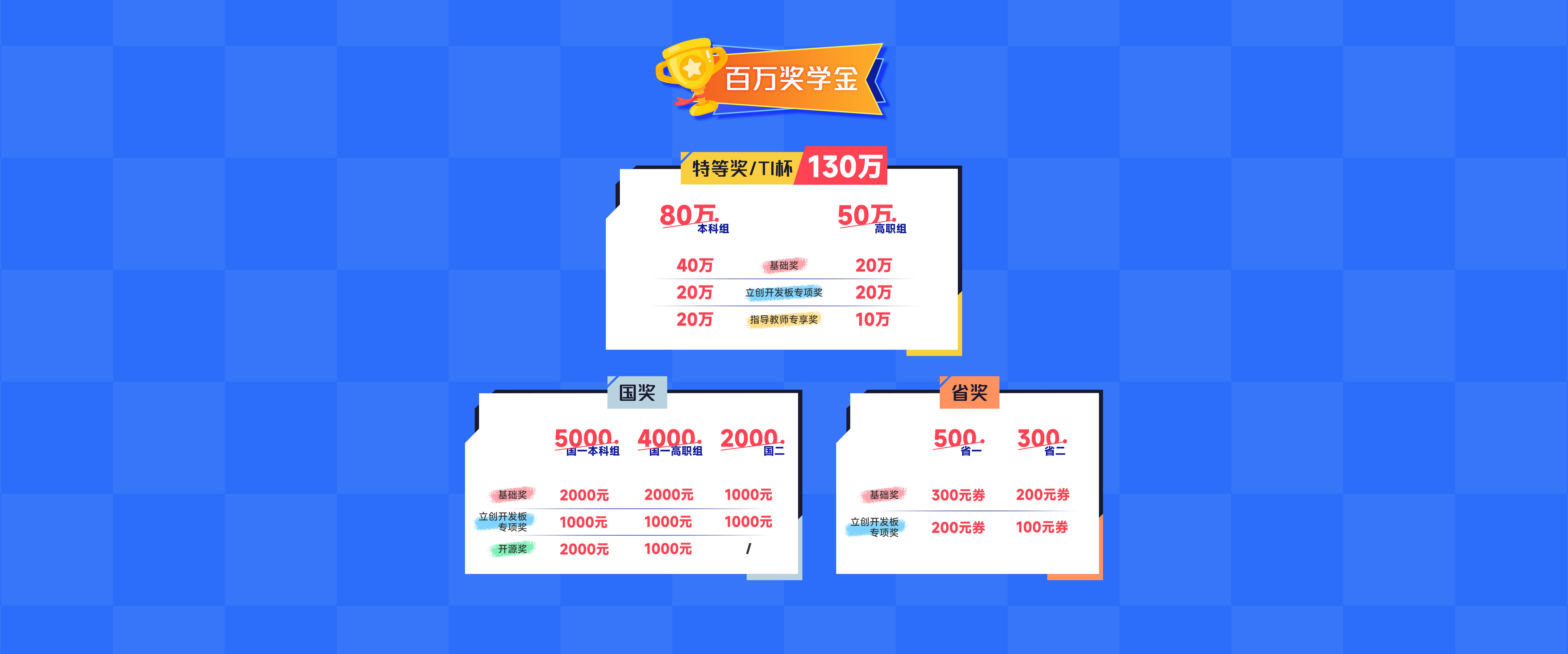 高职组10万元=5万元基础奖学金+5万元立创开发板专项奖;