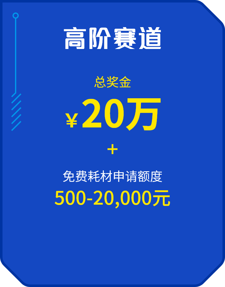 2. 自由初级与高阶赛道没有严格的区分线,选择哪个赛道由参赛者自己把握,一般耗材成本大于2000的,自动归为高阶赛道;