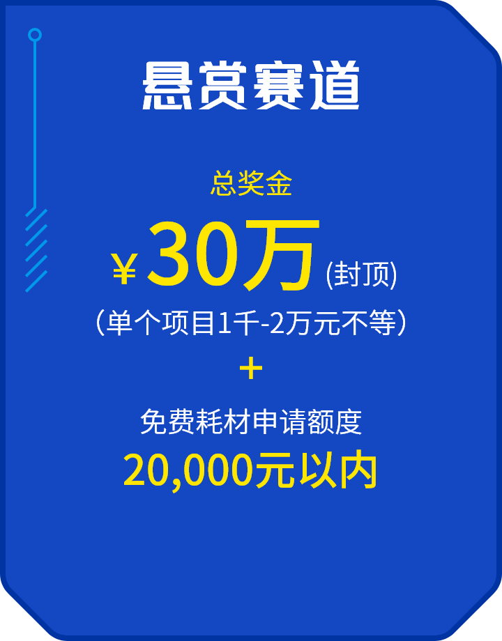 2. “悬赏赛道”总奖金30万(封顶),单个项目奖金1千-2万元不等,一个项目对接一个参赛者,成功结项百分百获奖;