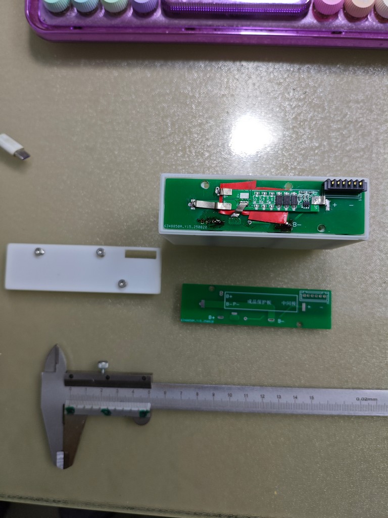 自己设计保护板不如买现成的模块便宜。保护板与电路板应该用青稞纸绝缘,我手上没有,用绝缘胶布凑合下吧